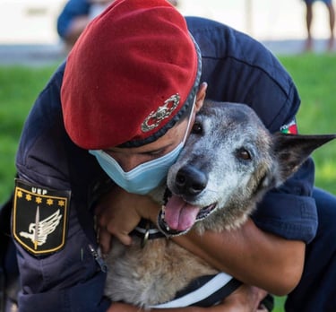 A nossa missão é encontrar famílias para cães de serviço público aposentados, que retribuam o seu serviço ao País com amor e cuidado nos últimos anos das suas vidas.